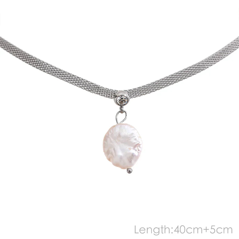 Exquisite necklace featuring natural pearls and a stainless steel chain. Tarnish-free and designed for chic minimalist looks.